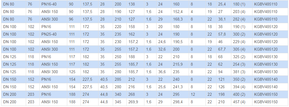 (1) EN558 TAB. 2 COL. 14 / DIN 3202-1 F4 (2) EN558 TAB. 2 COL. 15 / DIN 3202-1 F5 (3) ANSI B16.10 (4) B16.10 / API6D<